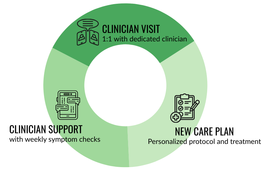 After the completion of the Gut Assessment, care often transitions into a Reversal Plan – a dynamic care model built to implement and support the initial Care Plan, and to systematically refine and generate new Care Plans over time. We view care in “cycles” with each cycle typically lasting 1-2 months and consisting of a clinician visit, new Care Plan, and clinician-guided support + adjustment to that care plan between visits.